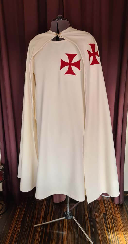 Templer Gewandung aus Wolle. Mit Kreuzapplikationen. Bestehnd aus Tunika, Umhang und passender Kopfbedeckung.