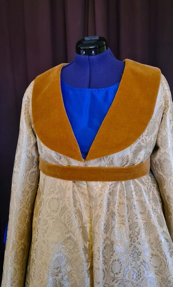 Surcout aus blauer Wolle mit Geren in den Seitennähten